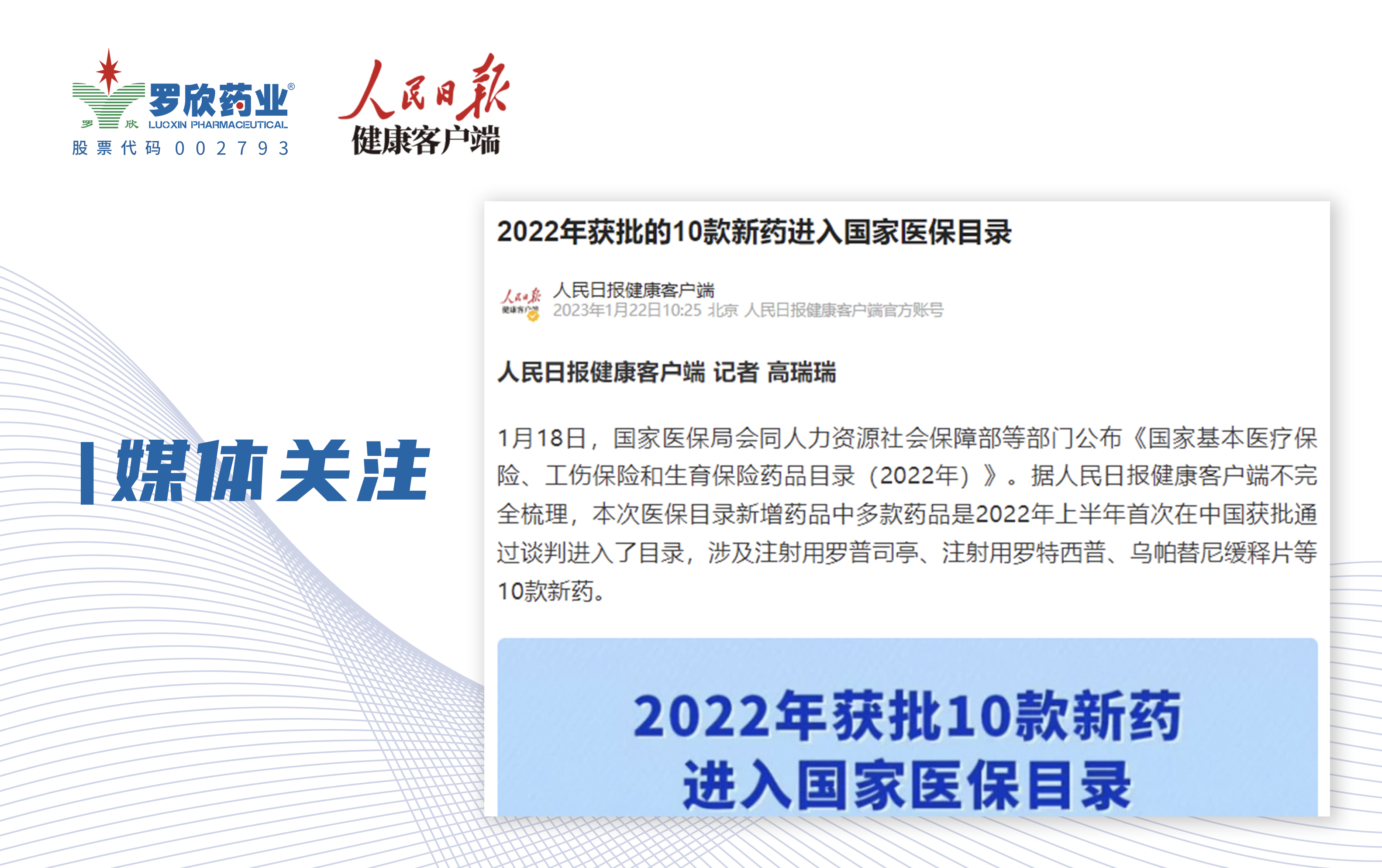 人民日報健康客戶端報道 | 2022年獲批的10款新藥進入國家醫保目錄
