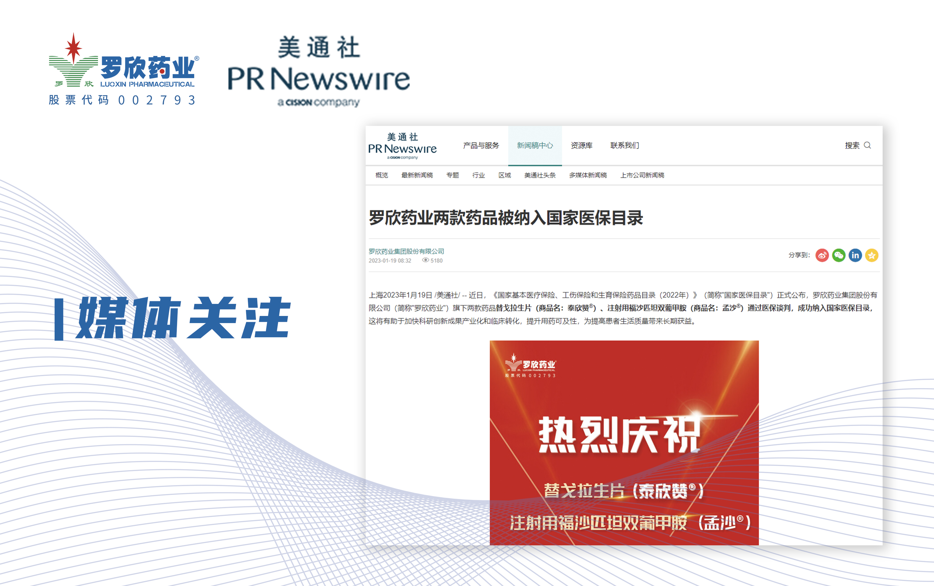 美通社報道 | 羅欣藥業兩款藥品被納入國家醫保目錄