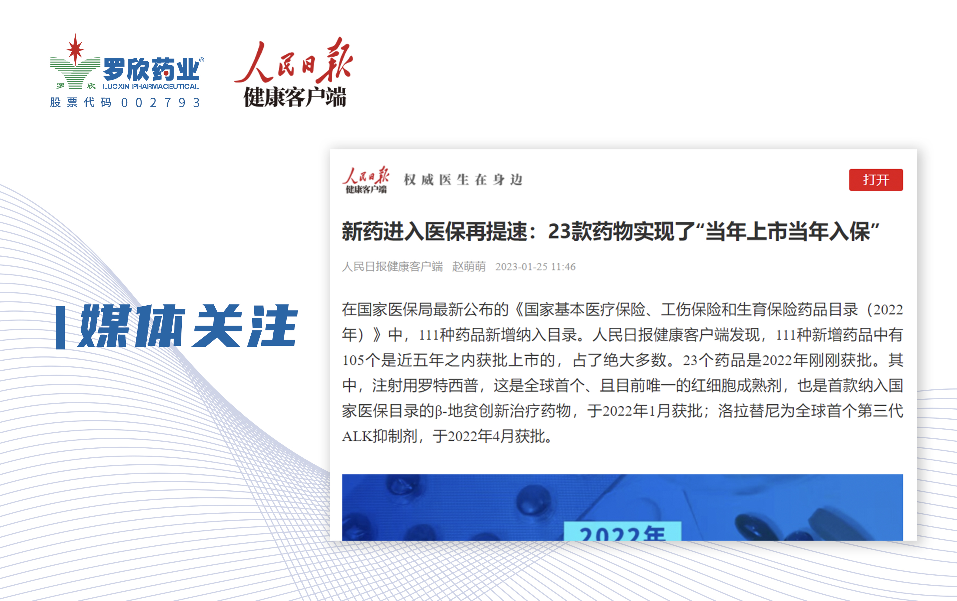 人民日報健康客戶端報道 | 新藥進入醫保再提速:23款藥物實現了“當年上市當年入保”