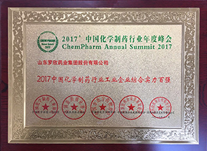熱烈慶祝羅欣藥業(yè)榮獲 “2017中國(guó)化學(xué)制藥行業(yè)工業(yè)企業(yè)綜合實(shí)力百?gòu)?qiáng)”榮譽(yù)稱號(hào)