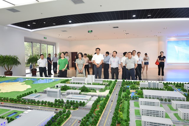圖為省政協常委、人口資源環境委員會主任、副秘書長張有興(前排右三)參觀我公司展廳時的情景