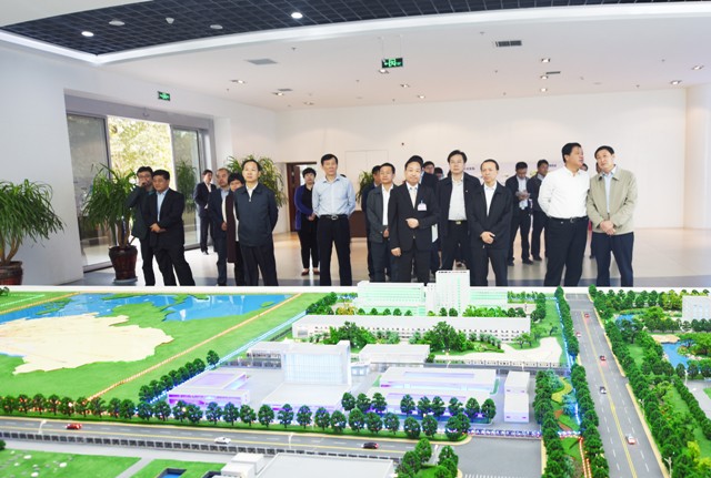 圖為山東省人民政府副省長王書堅(前排右三)一行參觀公司展廳的情景