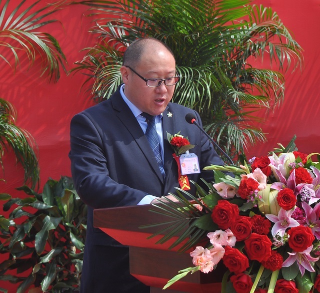 上圖為工程建設代表、股份集團公司副總經理曹傳表態發言時的情景