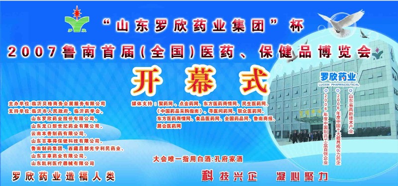 2007年9月12日-13日,羅欣公司參加了在臨沂商城會展中心舉辦的“魯南首屆(全國)醫藥、保健品博覽會”并冠名。羅欣眾多新穎的產品,熱情周到的服務吸引了眾多客商。這場博覽會的舉辦,成功宣傳了企業形象,推動了羅欣品牌的提升。