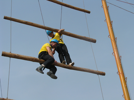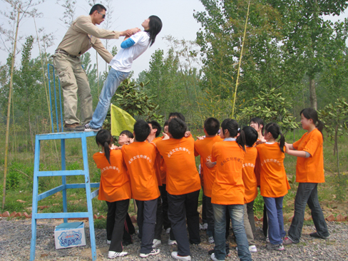 下列圖片為公司職工參加拓展訓練活動時的剪影。