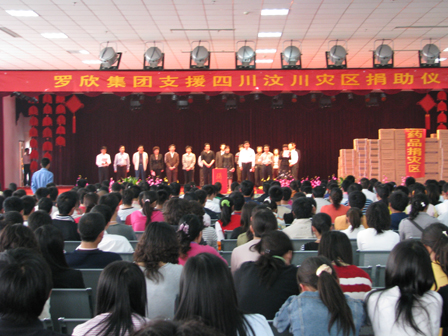 同時,公司倡議全體員工向汶川地震災區支援捐款,于2008年5月16日下午3:00在公司管理中心四樓禮堂舉行羅欣藥業支援四川汶川地震災區捐助儀式,臨沂市紅十字會、臨沂市食品藥品監督管理局、羅莊區人民政府、羅莊區衛生局、羅莊區食品藥品監督管理局等單位領導參加了捐助儀式,醫藥經濟報社、臨沂市電視臺、羅莊區電視臺等媒體記者也參加了此次捐助儀式。公司員工積極捐款,不到十分鐘時間,合計捐款人民幣106590元。公司董事長劉保起先生向紅十字會移交了捐助的藥品,并代表公司員工向紅十字會移交捐助的現金;市紅十字會謝軍會長向公司董事長劉保起先生移交了捐贈證書。