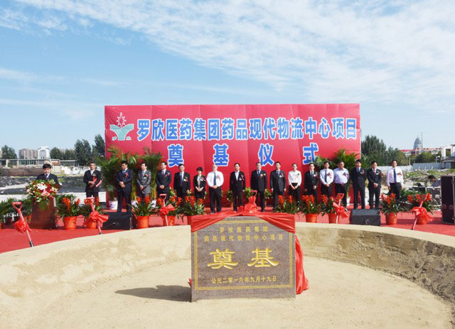 奠基儀式開始,首先羅欣醫藥集團總經理季紅海先生對項目情況做了簡要匯報:新建藥品物流中心項目占地共230畝,分二期建設,一期計劃投資20億元,建設倉儲中心、貿易中心、結算中心配套設施等共5萬平方米。物流中心設有24米高自動立體倉庫、高架庫、特殊藥品庫、冷庫等庫區,藥品拆零分揀等作業實現全自動操作。物流中心將引進先進的智能化和信息化設備,擁有完善的硬件設備,高度集成的ERP、WMS等計算機信息化管理軟件配套設施。項目實施后可優化藥品供銷配運環節中的驗收、存儲、分揀、配送等作業過程,提高訂單處理能力,縮短庫存及配送時間,減少物流成本,提高服務水平和資金使用效益,實現自動化、信息化和效益化的高度結合。項目建成后可儲存藥品15萬件,年藥品流通額可達50億元,實現利稅5億元。一期爭取2017年6月份投入使用,二期隨后建設。隨后建設單位作了表態發言,最后參加儀式的領導為羅欣醫藥集團藥品現代物流中心項目進行了開工培土奠基。