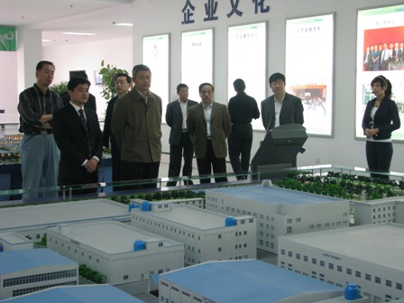 上圖為山東省省委第二巡視組副組長、正廳級巡視員鄧繼光(前排左二)等領導參觀公司展廳時情景。
