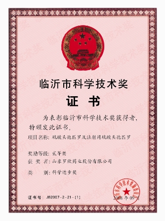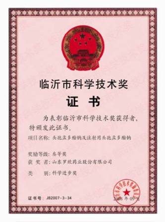 羅欣藥業(yè)始終堅持“科技興企”的戰(zhàn)略方針,加大科研投入,不斷推出高科技含量、高質(zhì)量、高附加值的“三高”產(chǎn)品。2008年9月,公司研發(fā)的產(chǎn)品硫酸頭孢匹羅及注射用硫酸頭孢匹羅、頭孢硫瞇及注射用頭孢硫瞇的新技術(shù)獲得臨沂市科學(xué)技術(shù)進步獎二等獎,頭孢孟多酯鈉及注射用頭孢孟多酯鈉、頭孢克肟的新技術(shù)獲得臨沂市科學(xué)技術(shù)進步獎三等獎。