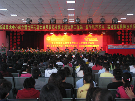 2008年10月23日上午,山東羅欣藥業股份有限公司在公司四樓禮堂隆重舉行“省級技術中心成立暨沈陽藥科大學羅欣藥業博士后流動工作站、沈陽藥科大學羅欣藥業教學培養基地、沈陽藥科大學羅欣藥業實習基地揭牌慶典儀式”。沈陽藥科大學校長吳春福,臨沂市委常委、市委秘書長李峰,市政府黨組成員市長助理宋法亮,沈陽藥科大學教務處處長夏煥章,沈陽藥科大學國際合作研究中心主任高峰,臨沂市食品藥品監督管理局局長崔增久,臨沂市衛生局副局長劉建廣,臨沂市科技局副局長趙世荀,臨沂市經貿委副主任李儉,全國人大代表、臨沂市人大常委會委員、臨沂市人民醫院黨委書記、院長尹傳貴,羅莊區委書記王行華,羅莊區委副書記、區長姜玉鵬,羅莊區人大主任山長青,羅莊區政協主席高文堂,羅莊區經貿局局長謝成琦,羅莊區科技局局長郭士林,羅莊街道黨工委書記張連勝等領導參加了慶典儀式。參加這次揭牌慶典的還有羅欣公司員工1000余人。同時這次慶典儀式,得到了各大新聞媒體的大力支持。