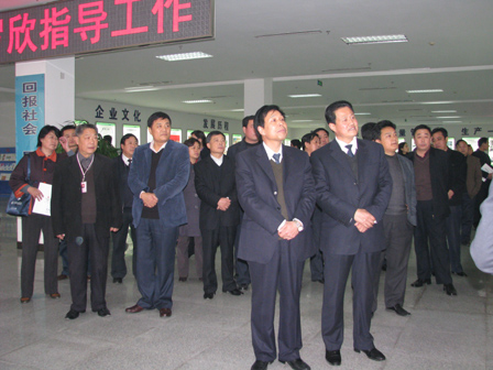 2008年12月3日,山東省總工會民主管理部部長侯國華(前排左一)、臨沂市委副秘書長、機(jī)要局局長溫希森(前排左二)、臨沂市總工會副主席張賢德(前排左三)一行120余人蒞臨羅欣指導(dǎo)工作。對公司工會建設(shè)、職工之家、廠務(wù)公開等公司工會建設(shè)情況做了詳細(xì)了解,聽取了有關(guān)羅欣工會工作的匯報,對公司工會建設(shè)工作給予了充分肯定。