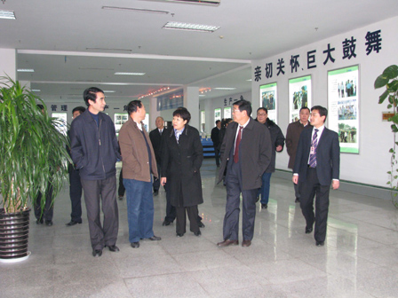 2008年12月4日,臨沂市人大常委會黨組書記、第一副主任朱紹陽(前排右二)、帶領駐臨沂市的全國人大代表和駐市直的部分省、市人大代表一行30余人蒞臨我公司指導工作,羅莊區委副書記、代區長劉淑秀(前排右三)、羅莊區人大常委會主任山長青(前排左一)等領導陪同,觀看了公司介紹剪輯片并參觀了公司展廳,對公司的發展運營情況做了詳細了解。