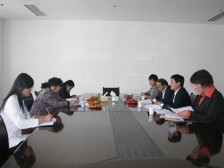 上圖為臨沂市財(cái)政局劉文秀科長,科技局謝瑩科長等領(lǐng)導(dǎo)在二樓會(huì)議室座談時(shí)的情景
