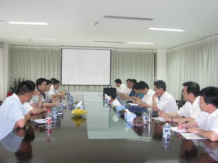 上圖為日照市發展和改革委員會副主任范宇欣(前排左三)一行參觀展廳時的情景 上圖為日照市發展和改革委員會副主任范宇欣等領導在三樓會議室座談時的情景
