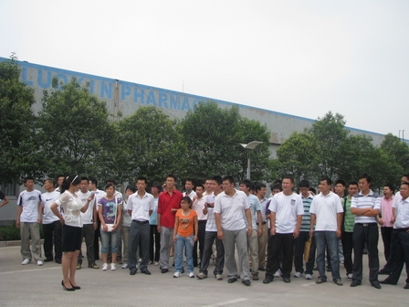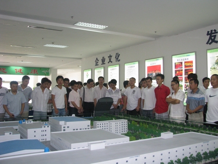 上圖為新入職員工參觀羅欣集團臨沂羅欣醫藥公司的情景