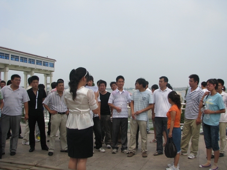 上圖為新入職員工參觀臨沂小埠東橡膠壩時的情景