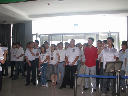上圖為新入職員工參觀臨沂鳳凰廣場時的情景