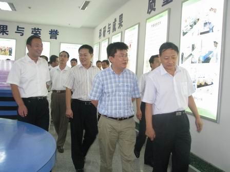 臨沂市團市委書記姜寧(前排左一),駐點干部、團市委組織部長段洪(后排左二),羅莊區羅莊區區委常委、區委副書記王皓玉(前排右一)等領導參觀集團展廳時的情景
