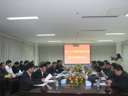 上圖為駐臨沂市全國(guó)、省、市人大代表會(huì)前集中視察人員在公司管理中心三樓會(huì)議室座談時(shí)的情景