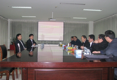 上圖為臨沂市工商局局長姚明(右四)一行在三樓會議室 與集團董事長劉保起會談時的情景