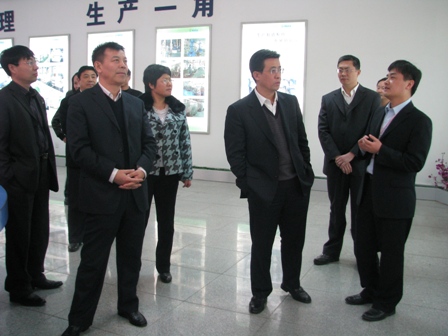 上圖為黑龍江省雙鴨市寶清縣縣委書記張野(前排左二)、寶山區(qū)區(qū)委書記溫躍峰(前排右二)等領(lǐng)導(dǎo)參觀公司展廳時的情景