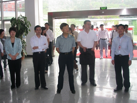上圖為國(guó)家統(tǒng)計(jì)局工交司副司長(zhǎng)周學(xué)文(前排左三)一行參觀公司展廳時(shí)的情景