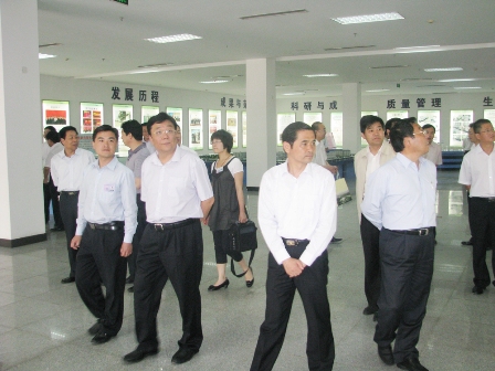 上圖為市委常委、常務副市長杜德昌(前排左三)一行參觀公司展廳時的情景