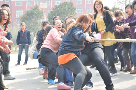 上圖為拔河比賽熱火朝天的場(chǎng)面