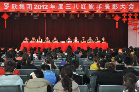 2013年3月8日,公司在管理中心四樓會(huì)議室隆重舉行了“羅欣集團(tuán)2012年度三八紅旗手表彰大會(huì)”,集團(tuán)領(lǐng)導(dǎo)及全體女職工參加了此次表彰大會(huì),工會(huì)主席、副總經(jīng)理李明先生宣讀了“關(guān)于表彰2012年度‘三八紅旗手’的決定”,董玉媚等12名優(yōu)秀女職工受到表彰。