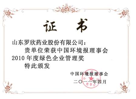 2011年4月,公司獲得由中國環境報理事會頒發的“2010年度綠色企業管理獎”。