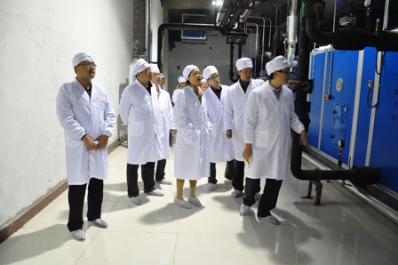 上圖為檢查組專家組實地查看裕欣藥業生產車間時的情景