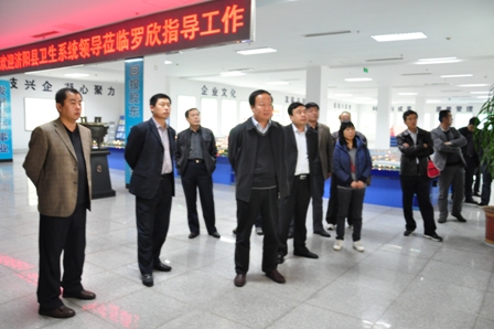 上圖為濟(jì)陽(yáng)縣衛(wèi)生系統(tǒng)考察團(tuán)領(lǐng)導(dǎo)參觀公司展廳時(shí)的情景