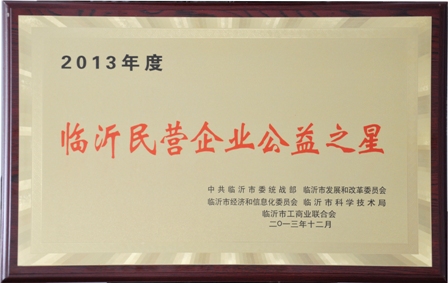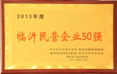 2014年1月7日,臨沂市工商聯(lián)在臨沂市政府組織召開(kāi)了臨沂市工商聯(lián)八屆三次執(zhí)委會(huì)議暨市光彩事業(yè)促進(jìn)會(huì)二屆一次理事會(huì)議。大會(huì)表彰了全市工商聯(lián)系統(tǒng)先進(jìn)單位、個(gè)人,我公司榮獲2013年度“民營(yíng)企業(yè)50強(qiáng)”、“民營(yíng)企業(yè)公益之星”兩個(gè)獎(jiǎng)項(xiàng)。