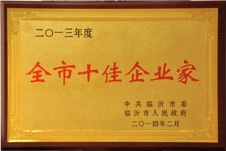 2014年2月7日,臨沂市縣域經濟發展總結表彰大會在臨沂市北城新區行政服務中心隆重召開。市委書記、市人大常委會主任張少軍,市委副書記、市長陳先運出席會議并作重要講話。會議對2013年在縣域經濟發展中的先進單位和先進個人進行表彰,集團黨委書記、董事長劉保起先生榮獲2013年度“全市十佳企業家”和“全市振興沂蒙功勛獎”榮譽稱號。