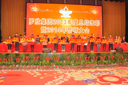 圖為羅欣集團2013年度總結(jié)表彰暨2014年誓師大會的場景