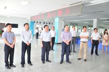 上圖為梁文躍副主任(前排左四)一行參觀公司展廳的場景