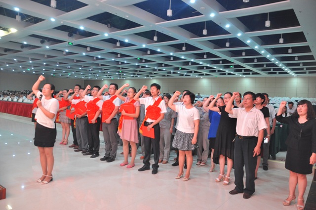 羅欣集團2014年度黨員表彰大會在莊嚴的國歌中開始,由股份集團公司總經理助理、人力資源部經理宋麗麗同志宣讀了《關于表彰2014年度羅欣集團“優秀黨員”的決定》,對獲得2014年度優秀黨員的九名同志表示祝賀,并頒發了榮譽證書和獎章。隨后集團規劃發展部經理劉明霞同志代表羅欣集團黨委講話,要求每位黨員積極投入到集團的發展中去,并帶領全體黨員,面對黨旗,進行了莊嚴的宣誓,重溫入黨誓詞。