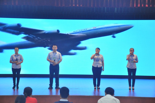 文藝演出在舞蹈《盛世歡歌》的喜慶祝福中拉開了序幕,演出現場亮點紛呈,高潮迭起。在高亢激昂的大合唱《我們走在大路上》、《打靶歸來》及獨唱《又是八月桂花開》中,公司員工用歌聲共同贊頌了我們黨帶領全國人民在中華民族偉大復興路上的巨大成就。而《蒙山情》、《和平的月光》、《中國魂 ,紅色夢》,則揭露了日本帝國主義在中國犯下的滔天罪行,講述了中國人民在抗日戰爭中百折不撓、英勇不屈的大無畏精神。《我的中國心》、《在那桃花盛開的地方》、《精忠報國》表達了對黨和祖國的熱愛與贊美,以及中華兒女報效祖國的決心,優美的舞姿、精湛的演講、動人的歌聲贏得了現場觀眾一陣陣熱烈的掌聲。