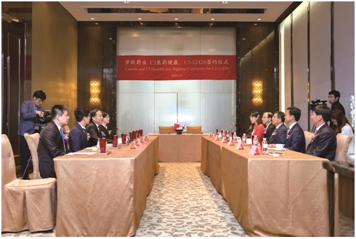 上圖為羅欣藥業CJ醫藥健康,CJ-12420簽約儀式現場