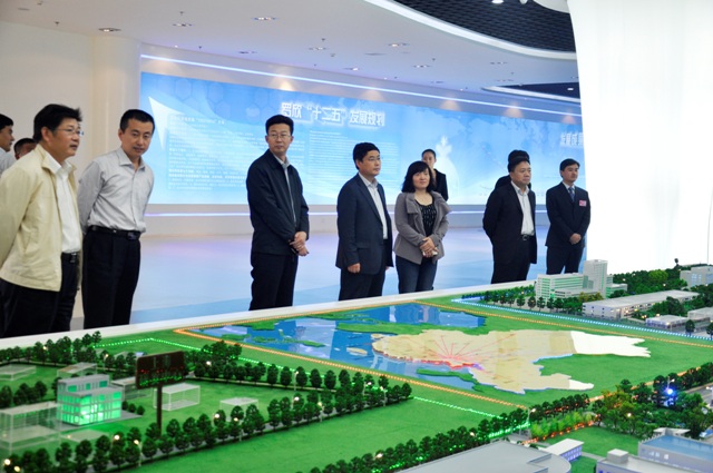 上圖為省食品藥品監(jiān)管局藥品生產(chǎn)監(jiān)管處處長劉玉東(前排右四)蒞臨公司展廳參觀考察